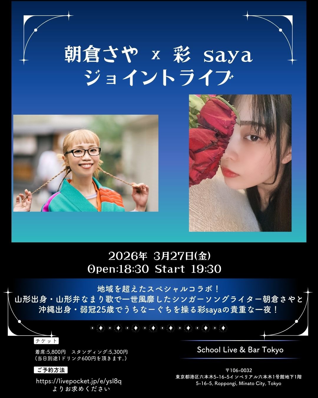 山形出身・山形弁なまり歌で一世風靡したシンガーソングライター朝倉さやと沖縄出身・弱冠25歳でうちなーぐちを操る彩sayaの貴重な一夜!
