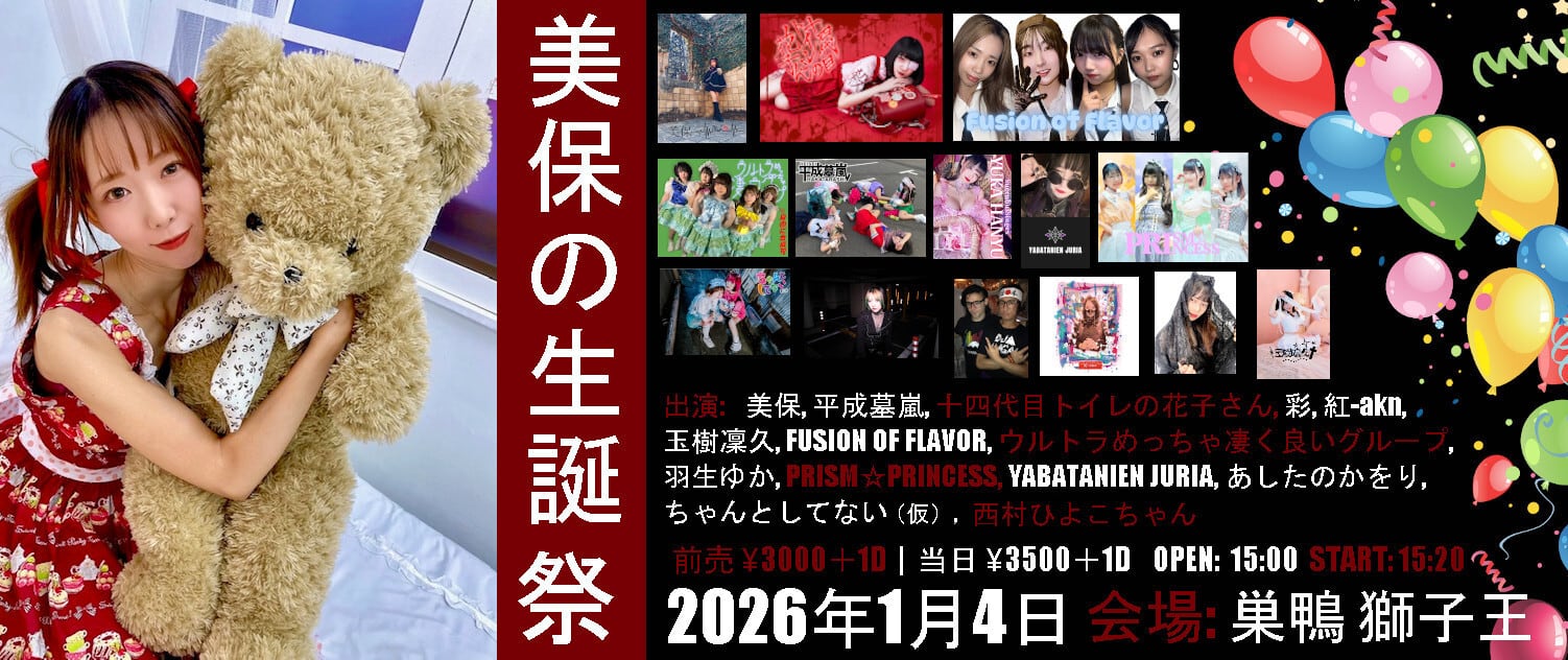 出演: 美保 十四代目トイレの花子さん 平成墓嵐 彩saya 紅-akn 玉樹凜久 FUSION OF FLAVOR ウルトラめっちゃ凄く良いグループ 羽生ゆか PRISM☆PRINCESS YABATANIEN JURIA あしたのかをり ちゃんとしてない(仮) 西村ひよこちゃん